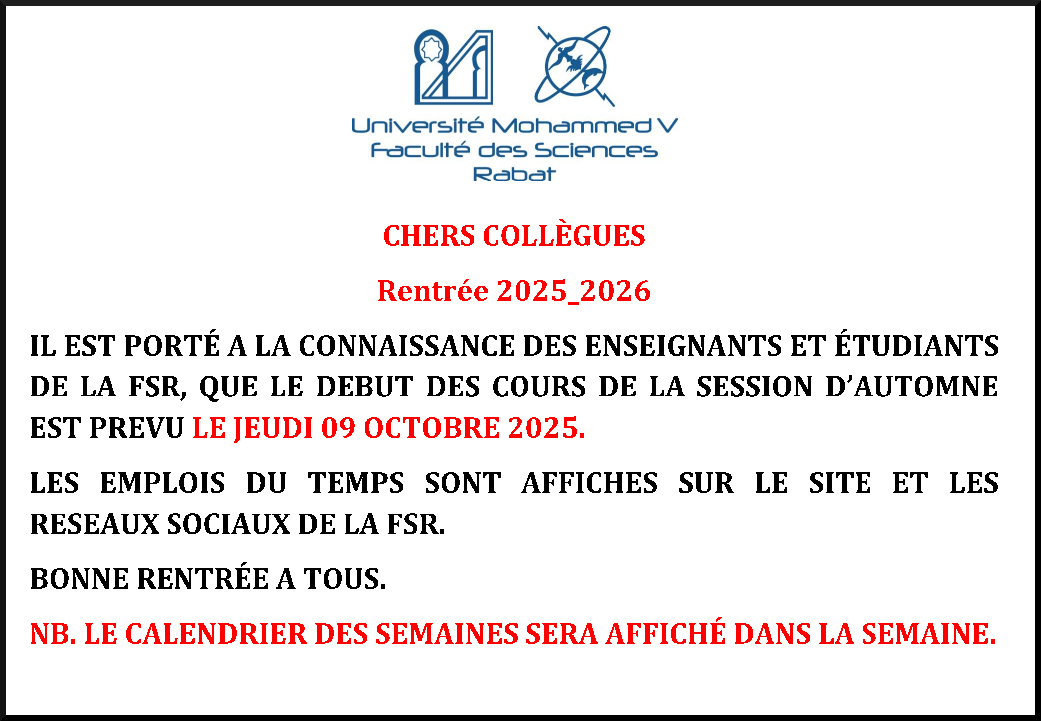IL EST PORTÉ A LA CONNAISSANCE DES ENSEIGNANTS ET ÉTUDIANTS DE LA FSR, QUE LE DEBUT DES COURS DE LA SESSION D’AUTOMNE EST PREVU LE JEUDI 09 OCTOBRE 2025